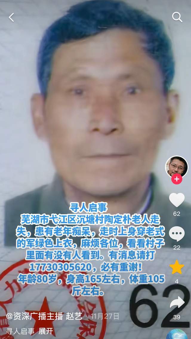 翻看其视频账号不难发现他的最后一条动态居然都是寻人的告示,这样的行为真的让人泪目,他是一个大善之人,也是一个无私之人。