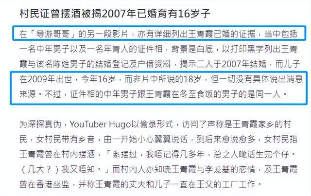 哪曾想,有博主抽茧剥丝,使得王青霞的过往展现在了网友的面前。据悉,她在佛山有着一段婚姻,但并没有结束,也就是说,王青霞与李龙基交往期间,李龙基的身份是第三者。