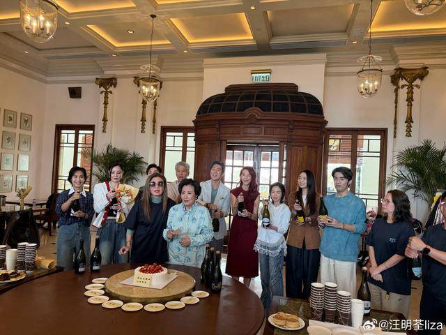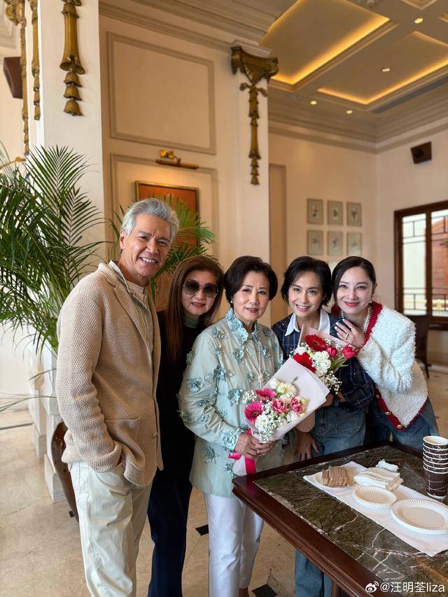 在杀青现场,很多演员都争相和汪明荃合照,看得出剧中汪明荃的造型还是非常富贵的,这次她留了短发,化了妆之后精气神显得不错,在剧中与其演母女的朱茵也是手捧鲜花和汪明荃合影留念,这次在戏里想必二人也是擦出了不少火花。
