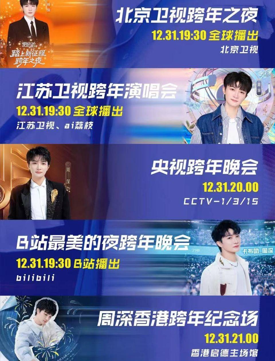 今年周深还是会参加其他台的跨年演唱会,比如连续多年演出的江苏卫视和B站,还有北京卫视和央视跨年,这些节目可能都会是提前录制,毕竟周深在香港举办跨年演唱会,不可能飞来飞去。