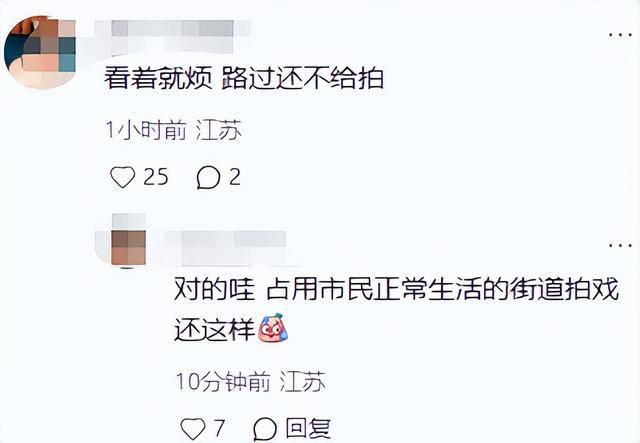 “占用市民正常生活的街道拍戏,却还对路人翻白眼,看着就烦。”