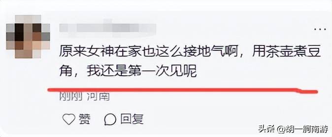 有人说:“原来女神在家也这么接地气啊,用茶壶煮豆角,我还是第一次见呢。”