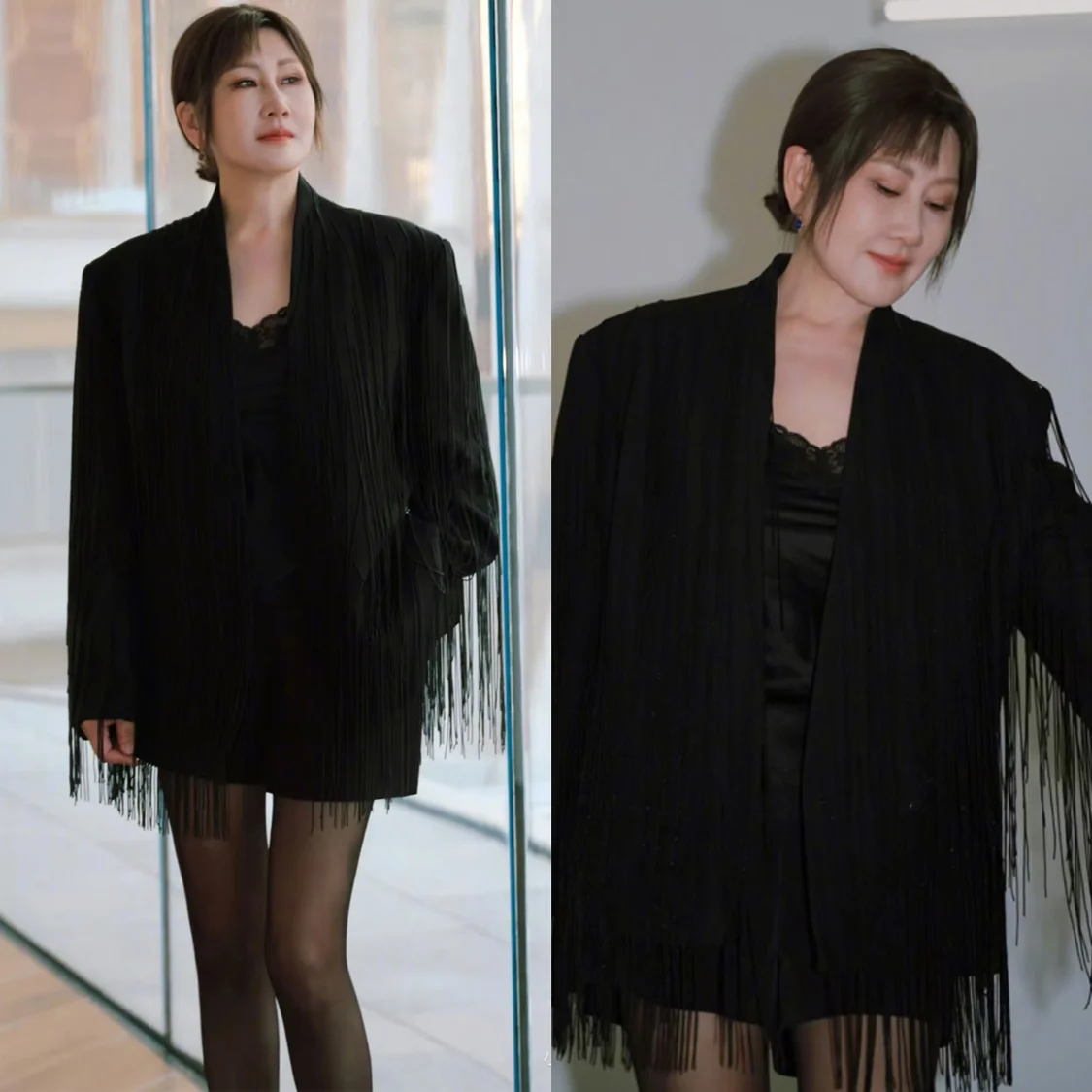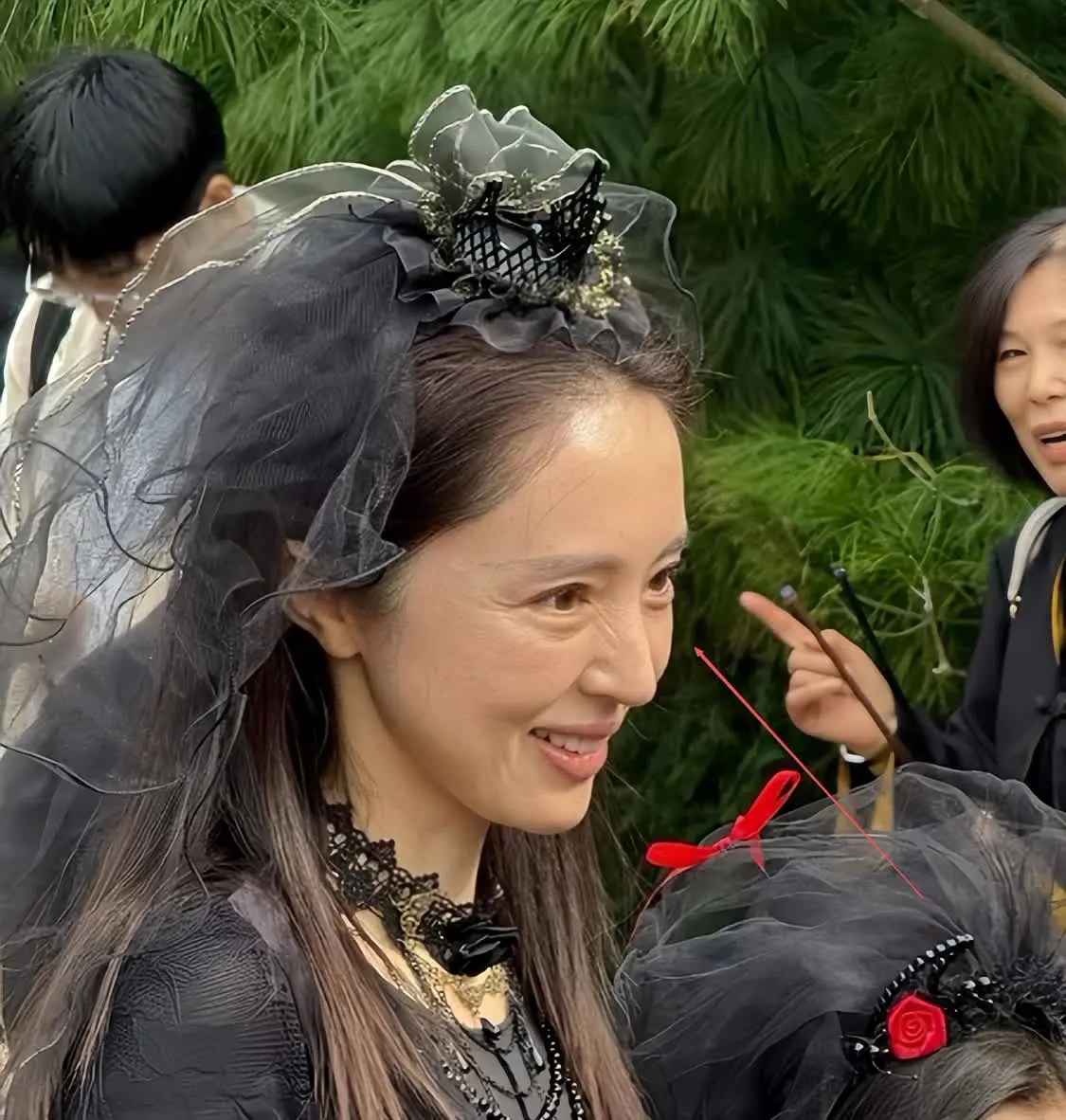 她还穿着黑色系的穿搭,被网友们评价为,像是童话故事里的恶毒后妈。