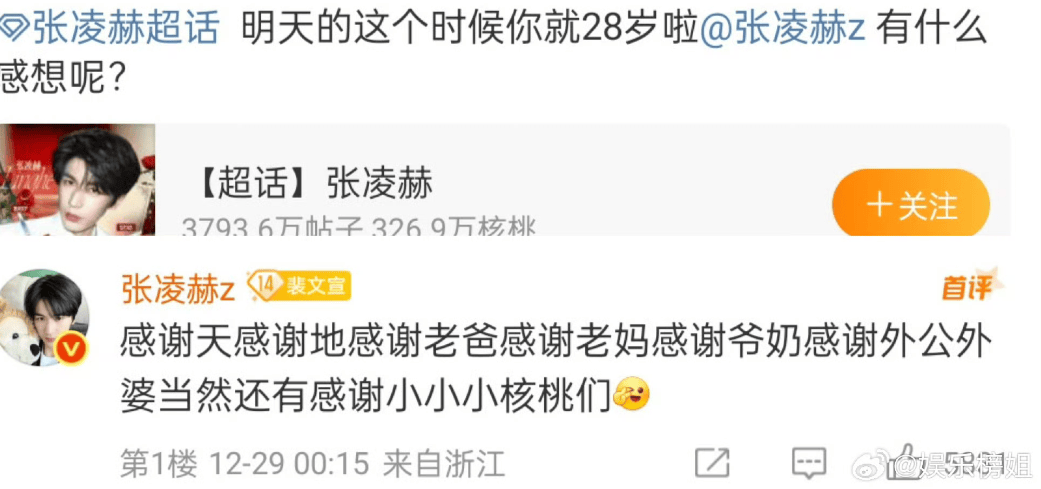 2025年12月30日,张凌赫的28岁生日刚过,微博热搜就被“张凌赫廿八韫玉冕以耀光”的彩虹屁刷屏了!这位凭借《苍兰诀》长珩仙君和《治愈系恋人》小何医生圈粉无数的“人间奥特曼”,生日当天不仅收获了粉丝的“土味情话”轰炸,还因为一句“感谢天感谢地感谢老爸老妈”的排比式感恩,被网友调侃:“这波感谢名单比奥斯卡颁奖还长,建议下次直接出个《感谢百科全书》!”