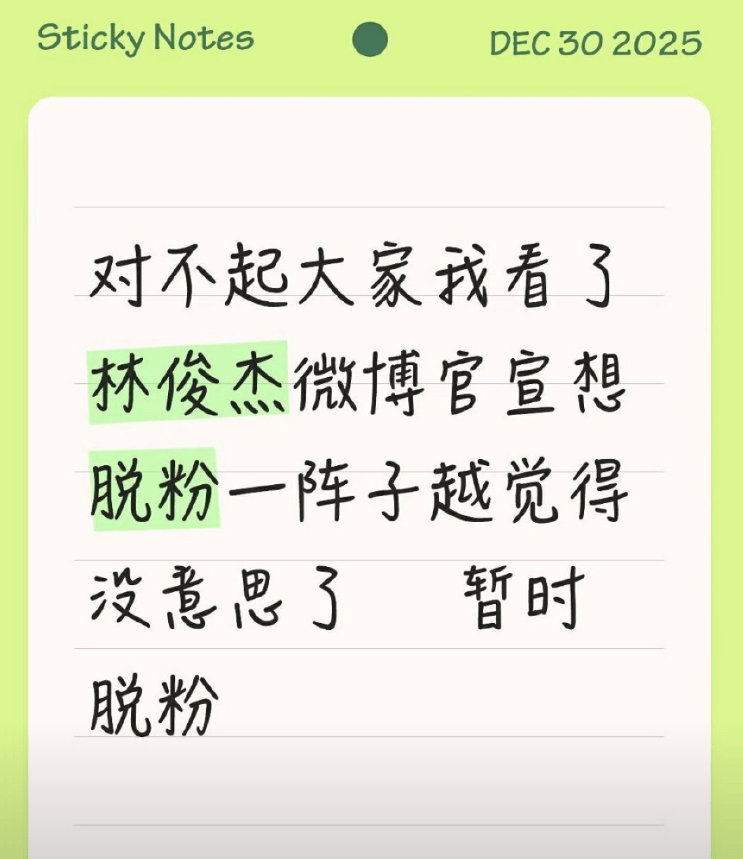 2025年最后一天,乐坛“行走的CD”林俊杰突然喜提热搜——#林俊杰十年粉丝宣布脱粉#!本以为又是粉丝玩梗,结果点开一看,好家伙!这届粉丝的“脱粉宣言”比偶像剧还跌宕起伏,连吃瓜群众都忍不住喊话:“JJ,这波操作你礼貌吗?”