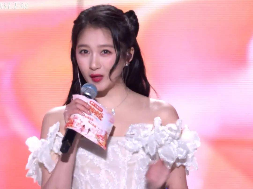 刘雨昕爱豆妆造中规中矩,妆容不够严谨,眉间的“大痘”没有遮住,不知是不是压力太大了呢。