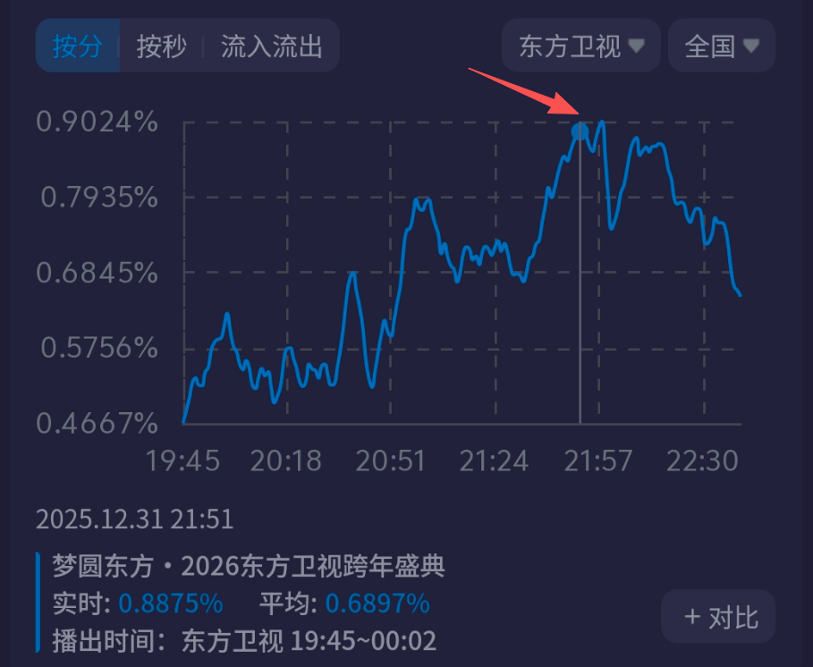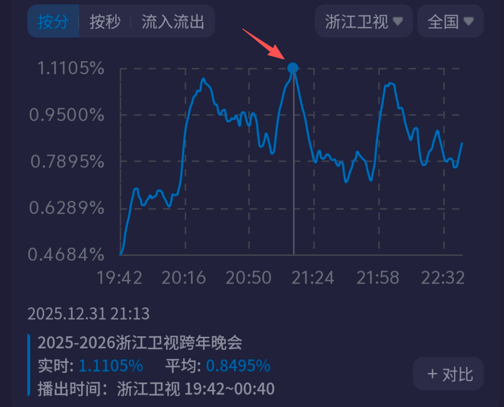 真正的最高点则是倪萍和赵本山儿子上台——突破2.45%!