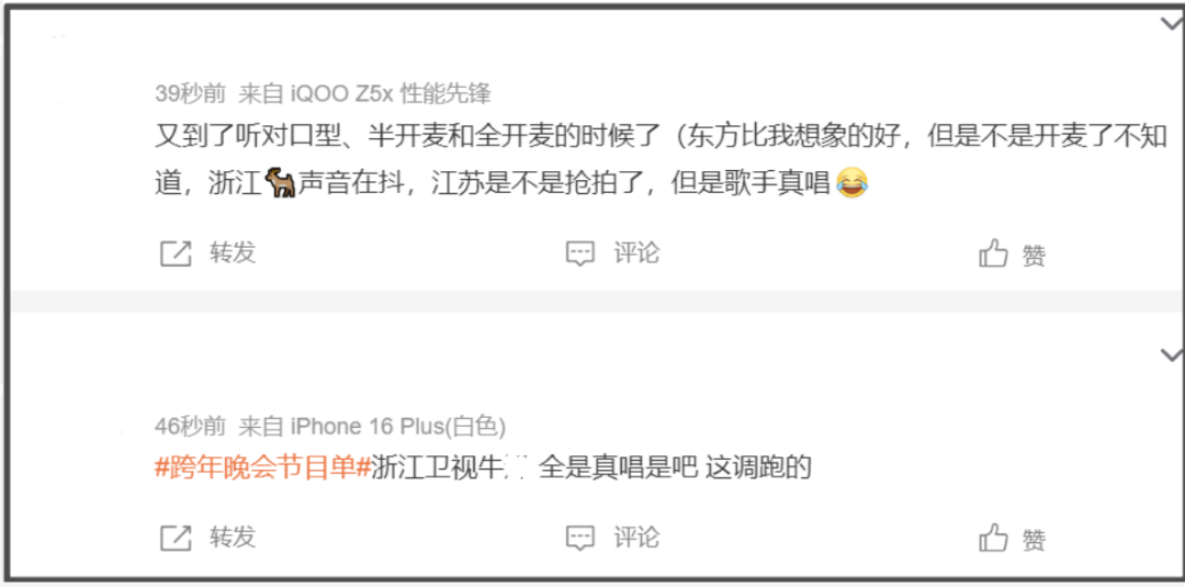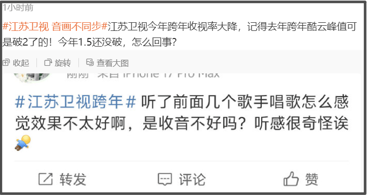 只是卫视晚会竞争激烈,江苏台能做的,其他台也能做,随着越来越多卫视主打晚会真唱,江苏台跨晚观众流失了不少。