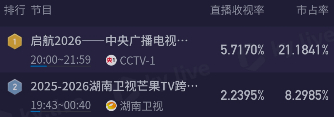 至于北京台的跨晚,堪称平平无奇,录播邀请的嘉宾和其他卫视重叠度太高,收视垫底不意外。