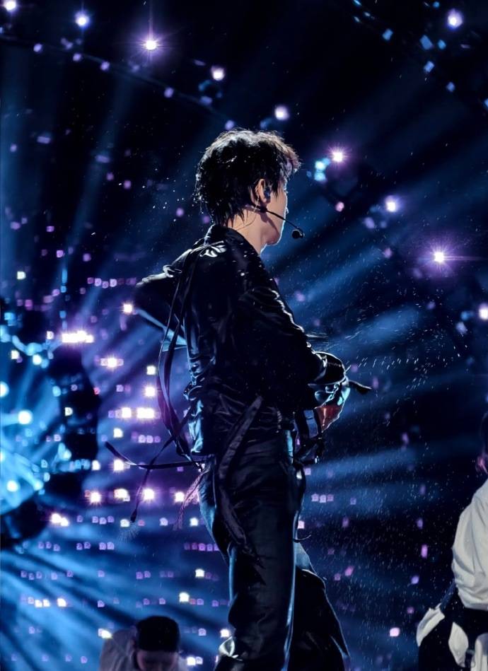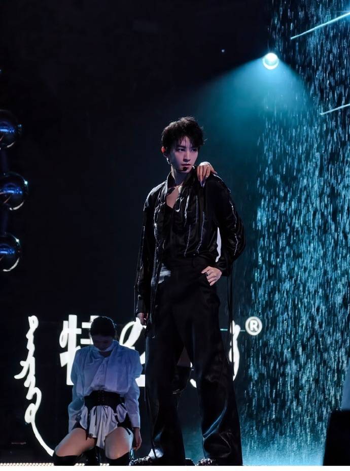 王俊凯身穿法国品牌定制深V黑色演出服(具体品牌未官方确认),脚踏红底鞋踏入水舞台。舞步精准踩点,水花随动作飞溅,湿发与湿透的衣物形成性感和力量感的交融。舞台采用一镜到底拍摄手法,完整呈现其核心力量与肢体控制力,被媒体称为“舞台王者归来”。