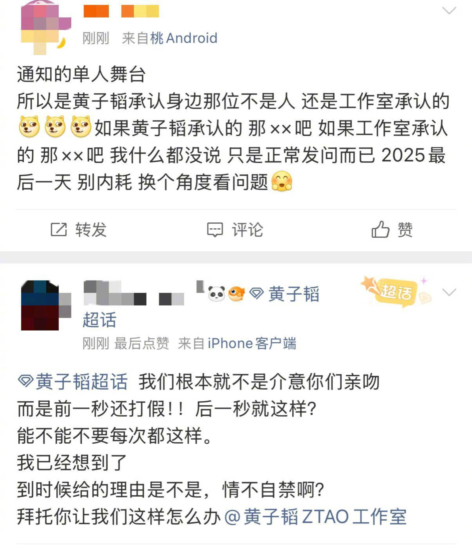 2025年跨年夜的瓜田里,最让人哭笑不得的一幕,不是舞台上的甜蜜互动,而是黄子韬官方粉丝大吧深夜甩出的那个孤零零的“?”。这个标点符号没有任何多余文字,却精准戳中