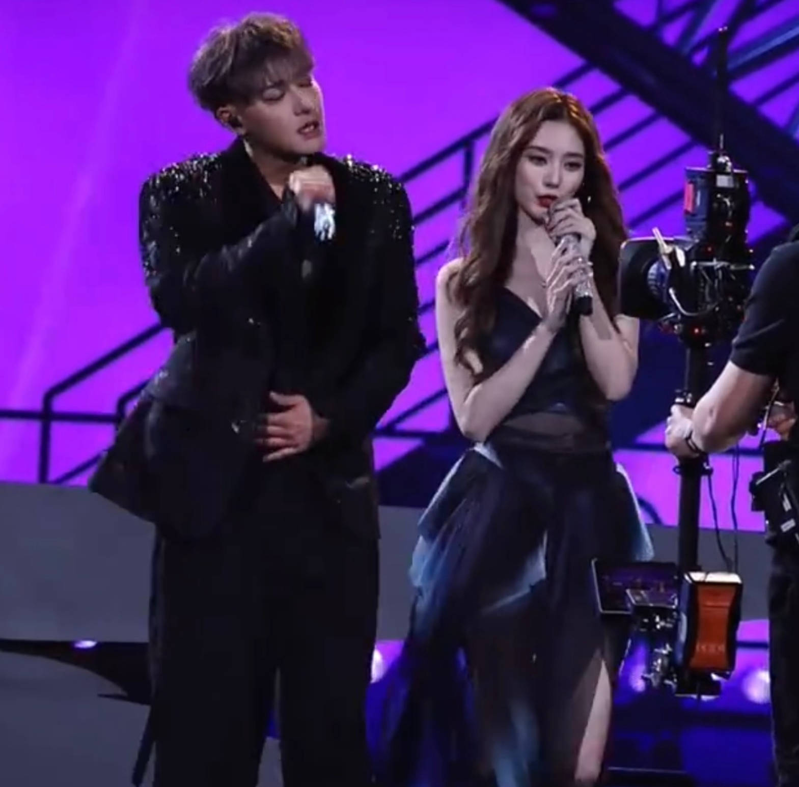 黄子韬和徐艺洋合唱婚纱主题曲目时,舞台上不仅有“轻抚脸颊”的温柔互动,还有两人借位靠近的暧昧画面。虽然工作室后来澄清这只是既定舞台设计,没有实质性亲吻,“激吻”说法纯属观众视角偏差和营销号夸大,但在粉丝眼里,这和上午辟谣的内容已经差了十万八千里。最惨的莫过于黄子韬大吧,前脚刚帮工作室稳住场子,后脚就被正主的舞台设计狠狠打脸,只能在深夜发出一个灵魂拷问的“?”。这个问号堪称年度最佳情绪表达,网友们纷纷调侃:“大吧现在的心情,比吃了苍蝇还难受”“这一个问号,包含了震惊、愤怒、委屈,还有一丝想脱粉的冲动”。