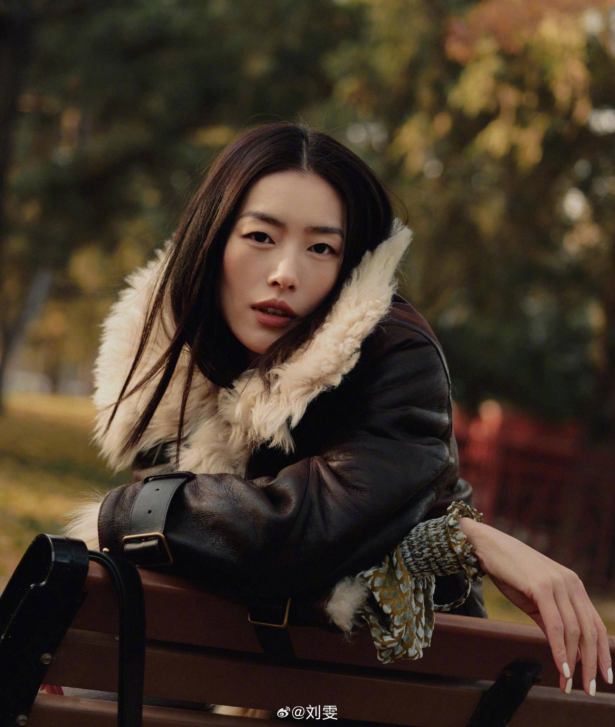 刘雯一身棕褐色织就的秋日光影,堪称美拉德高阶范本。哑光粗糙的皮质派克服肌理感十足,有着未经驯服的荒野气场。柔软的长毛从衣内翻出,与毛领连为一体,为硬朗的氛围注入一丝暖意,却也显得更加“兽性”逼人。小面积露出的鱼鳞纹短绒内搭,是强势之下的惊喜,它以立体的光泽变幻,加入了这场围猎寒冷的游戏。英气的及膝高跟靴,武装在逆天长腿上,完成了攻击性最后的版图铺张。宫墙外,枫叶浓郁入画,刘雯斜靠在长椅上,仿若嵌在了浪漫深处,成为季节的底色。