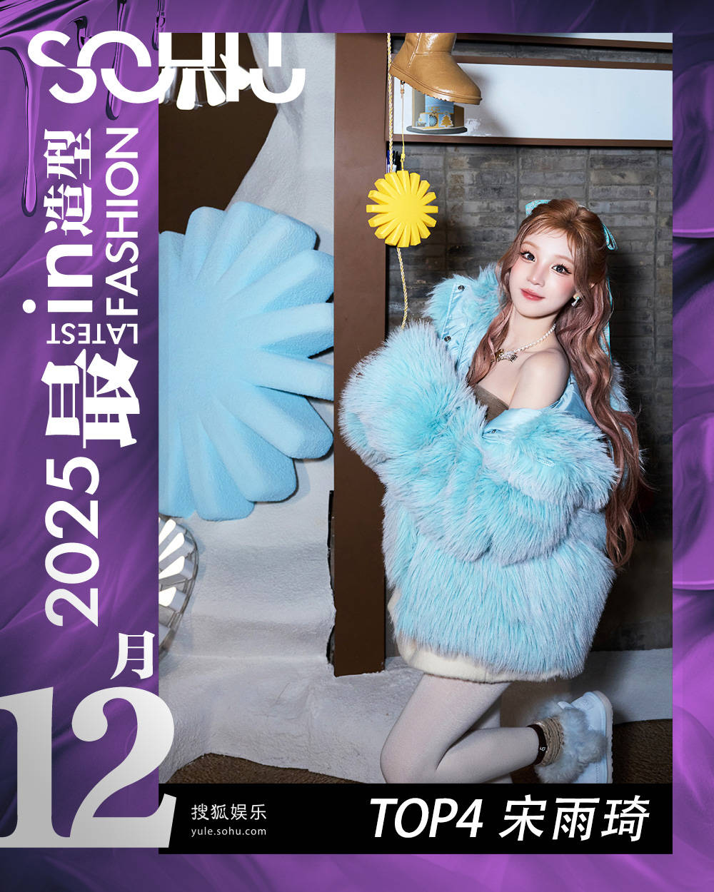 在冬日还能将鬼马感进行到底,宋雨琦的可露丽童话谁能不爱~薄荷蓝的毛绒外套,裹着海盐冰淇淋的香气,直直冲向感官。柔柔的长毛,笼着雾感光泽,又似把夏日的爽冽借在了一丝留在身上,瞬间冒出清甜的少女泡泡。内搭的轻薄针织短裙,设计着咖白双拼的抹胸,活脱脱一个带着焦香的甜筒,承接着牛奶白的柔嫩肩颈,让人忍不住想咬上一口。脚上一双水蓝雪地靴,如踩了两团雪团,节奏轻盈。她手持小雏菊,调皮翘腿,化身在雪境小镇里闪现的糖霜精灵,甜得发嗲,又清得透亮。