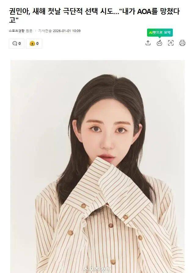 2026年1月1日元旦当天,韩国娱乐圈被一则沉重的消息笼罩。前AOA成员权珉娥通过个人社交媒体发布长文,亲自证实自己曾尝试极端选择但被救回,并写下“是我毁了那个组合&rdqu