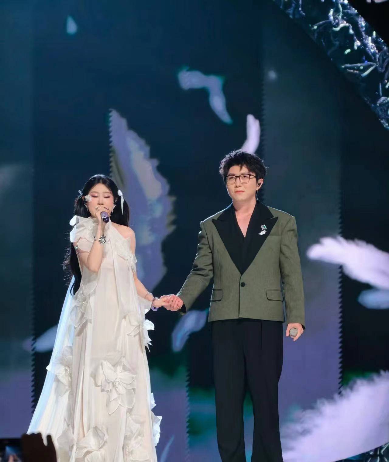 在表演过程,毛不易握住沈佳润的手,给她鼓励和安慰,想不到她挣脱了,因为在演唱的时候,手上有动作要表现。