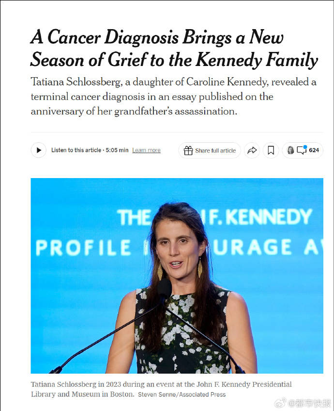 从确诊到离世,短短19个月。从公开发文到永别,仅仅六周。塔蒂亚娜·施洛斯伯格的去世,不仅是一个年轻生命的陨落,也再次将“肯尼迪诅咒”这个老生常谈却又毛骨悚然的话题,推到了公众视野的中心。当健康与无常正面撞击,当个人意志与家族宿命激烈交锋,留下的,是又一段令人唏嘘的家族纪事,和一个关于生命脆弱性的、跨越阶层的永恒警示。
