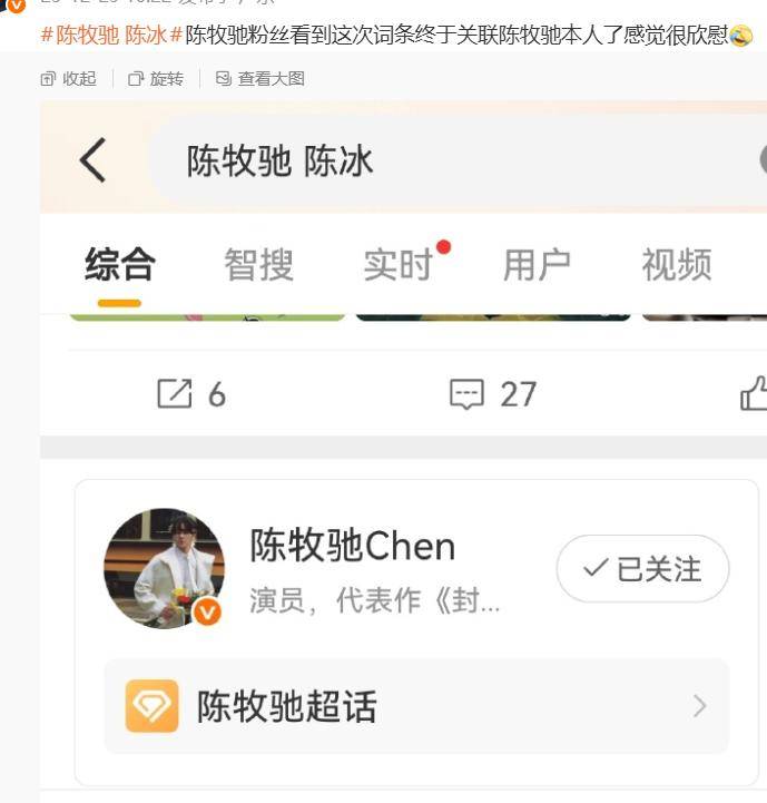 但这次热搜的关联用户里也有了陈牧驰,不能再搬出那套“买热搜”的说辞来挽尊了。
