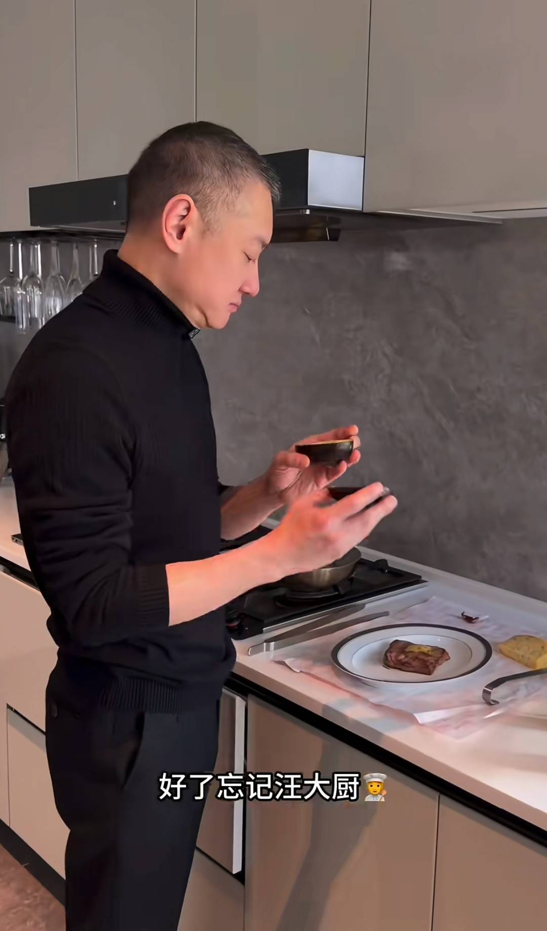 在为妻子准备的餐点中,汪雨还展现了他熟练的英文,一边操作一边用英文介绍食材和烹饪过程。一旁的崔璨也贴心地在一旁帮忙,小鸟依人。看着眼前这位比自己高出一个头的成熟男性,虽然岁月在他脸上留下了痕迹,但其才华和魅力依旧不减当年,难怪年轻貌美的崔璨会选择嫁给他。汪雨对营养学的了解,也体现在了他的烹饪中,他注重食物的营养均衡,确保孕妇能摄入足够的蛋白质和膳食纤维,这对胎儿的健康发育至关重要。