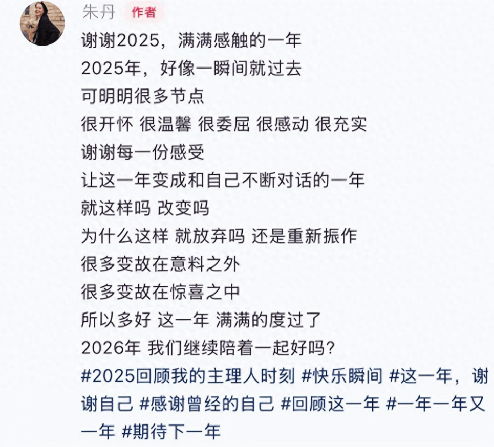 在1月1日的前一天跨年晚上,朱丹就在社交平台上晒出视频回顾了一整年,晒出了新年全家福,一家人在一起非常的开心,全家素颜出镜,朱丹的脸倒是比老公还要黑,两个孩子戴着近视眼镜笑容都好像了。