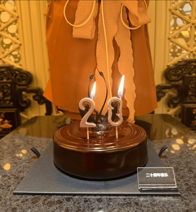 两夫妻准备结婚20周年纪念日还很有仪式感,一大束的鲜花,殷旭亲自给老公倒酒,两人坐在凳子上都有老夫老妻的既视感了,中式装修的风格显得家庭传统又豪奢,两人还定了一个黑天鹅大蛋糕,之前女儿庆生的时候也是天鹅造型的蛋糕,可见殷旭是很喜欢这类的蛋糕了。