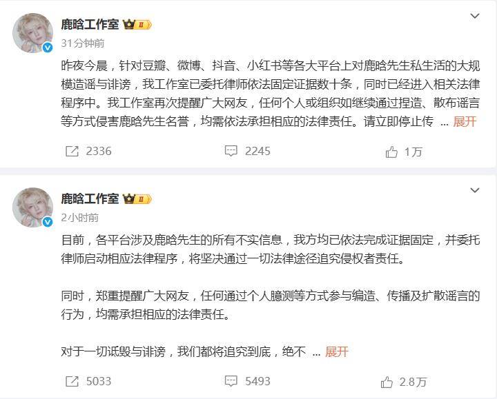 1月3日,当大多数人还在睡梦中时,鹿晗工作室已打响了一场名誉保卫战。从凌晨5:35到7:21,接连两份措辞严厉的“严正公告”掷向全网,明确宣告:对所有私生活谣言已完成证据固定,法律程序已启动,将追究到底,绝不姑息。这波凌晨突袭式的强硬回应,瞬间给沸沸扬扬的网络爆料泼了一盆冰水。