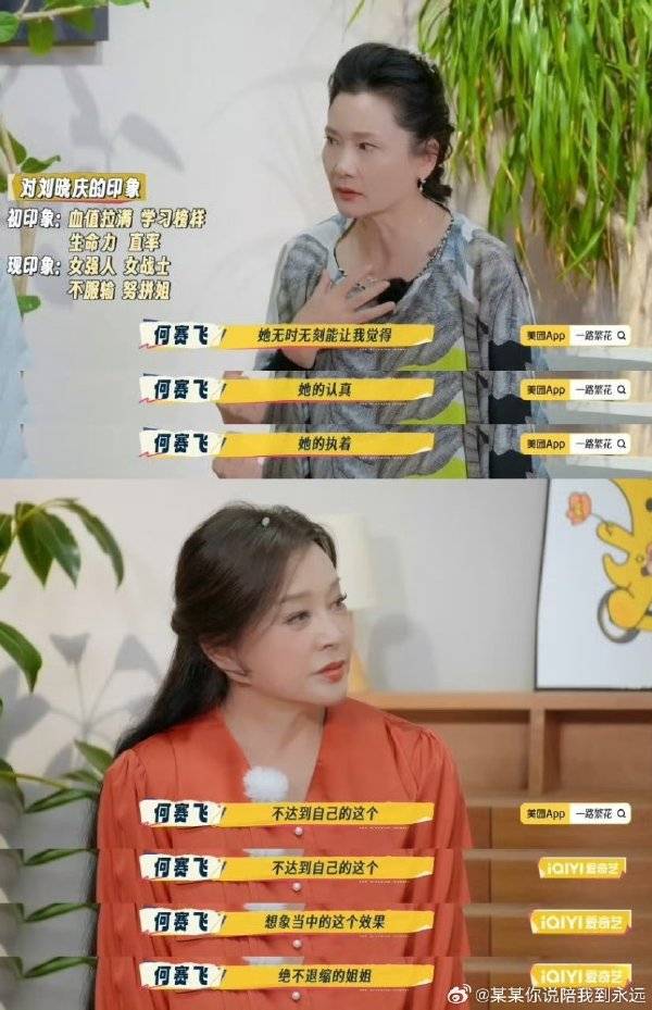 刘晓庆曾背诵何赛飞19岁越剧台词证其专业认可,何赛飞则坦言“吵架是因真心在乎”。