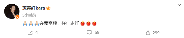 1日,据李力持导演消息 ,香港著名演员、武术指导袁祥仁1月1日因病于伊利沙伯医院去世,享年69岁。据悉,丧礼定在2月1日于世界殡仪馆3楼明德堂设灵。2日,惠英红在社交平台上发文悼