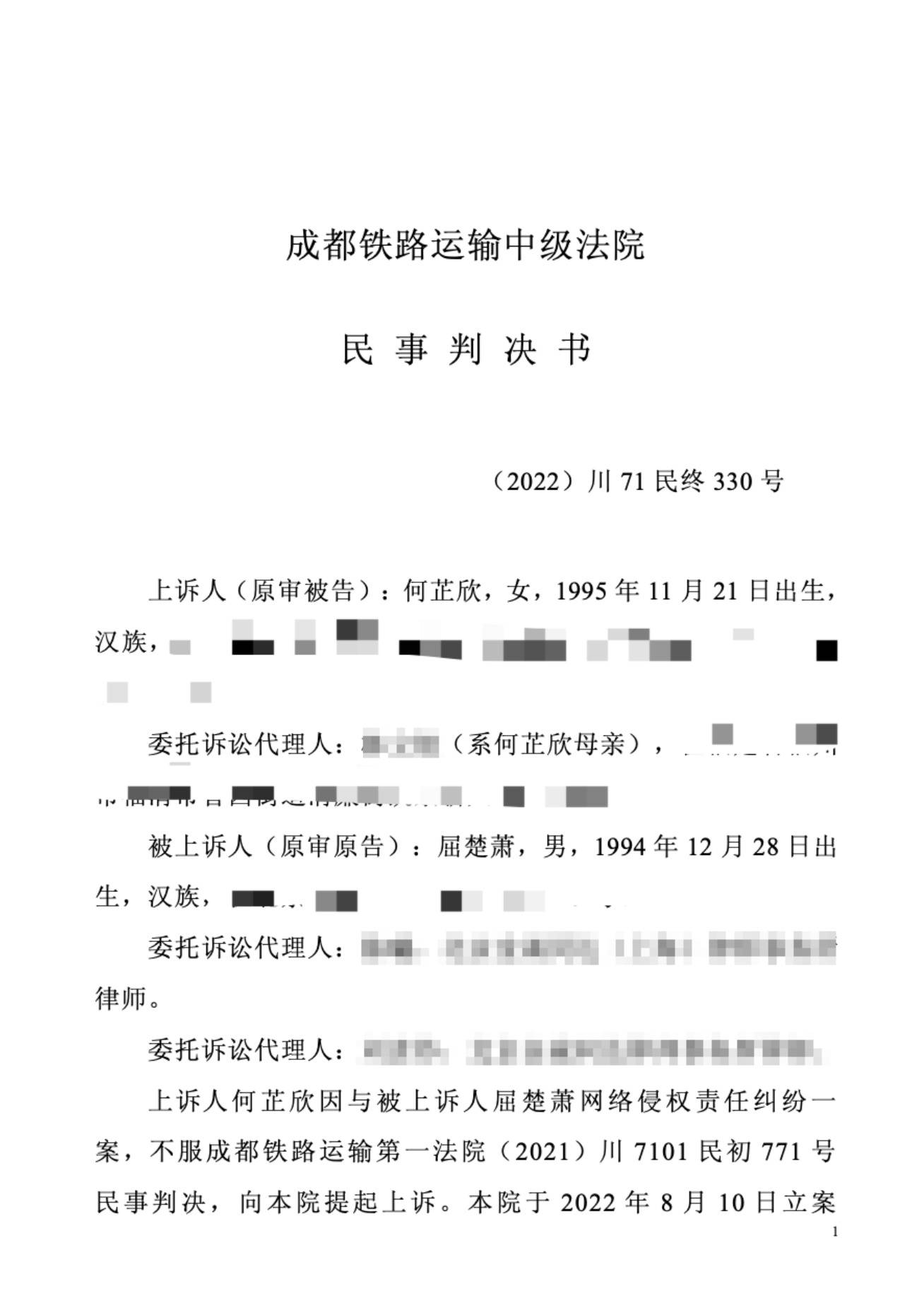 4日,屈楚萧工作室就近日被重提的谣言公开二审胜诉判决书,并发文称:“判决书明确载明:何女士于庭审中承认自己发布相关微博时并未怀孕,屈楚萧先生亦未对其有暴力殴打行为。
