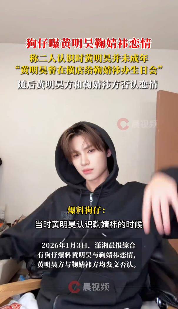 2026年刚开年,娱乐圈的“恋情瓜”就带着一股熟悉的配方味来了。1月3日,知名狗仔“阳阳”一记猛料,声称黄明昊与鞠婧祎“曾恋爱”,细节更是绘声绘色:男方未成年时通过“夜店女老板”结识女方,还在横店亲手为其操办生日宴。消息一出,瞬间冲上热搜。