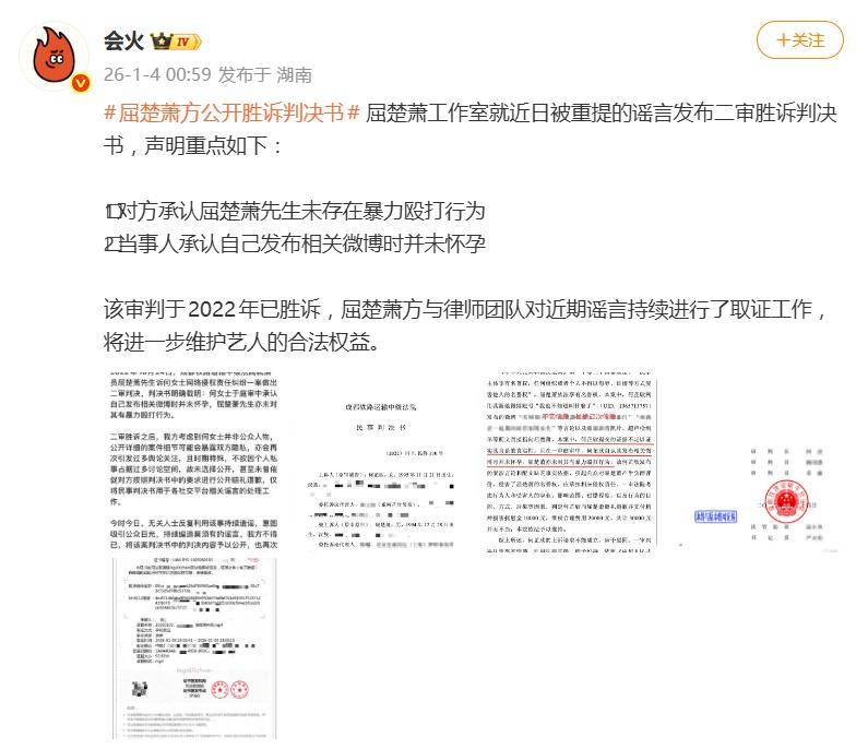 1月4日凌晨,一份二审胜诉判决书,被屈楚萧工作室首次公开,瞬间在网络上投下一颗“真相炸弹”。核心信息直白而震撼:指控方何女士在法庭上亲口承认,发布指控时“未