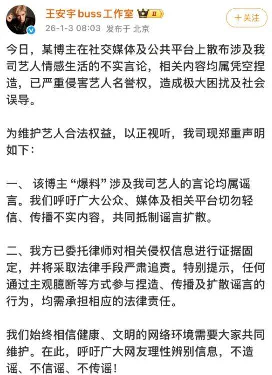 目前,累计8家工作室(含关晓彤、王安宇、檀健次等)密集辟谣,创单日声明纪录。