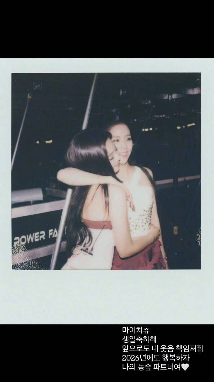 Jennie发布头贴头合照,用韩语配文称金智秀为“我的ChiChu(마이치츄)”,强调其为“我的动物森友会搭档”,并写道:“生日快乐!以后也要继续负责我的笑点,2026年也要一起幸福啊”。