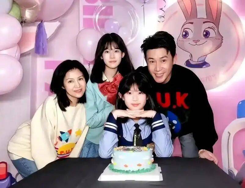 网友调侃陆毅一家四口“共用一张脸”:贝儿复刻父亲相貌,妹妹小叶子更像母亲,姐妹俩均继承父母的长腿基因。
