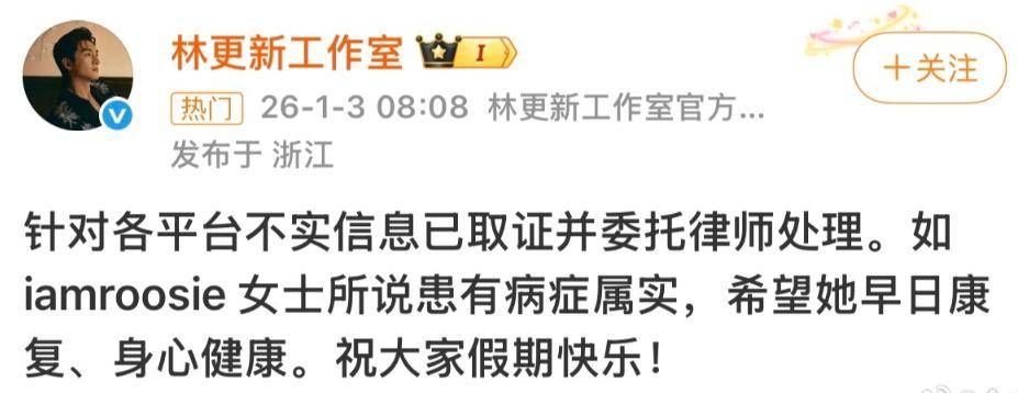 不过,林更新的工作室辟谣了,就看粉丝们信不信了。