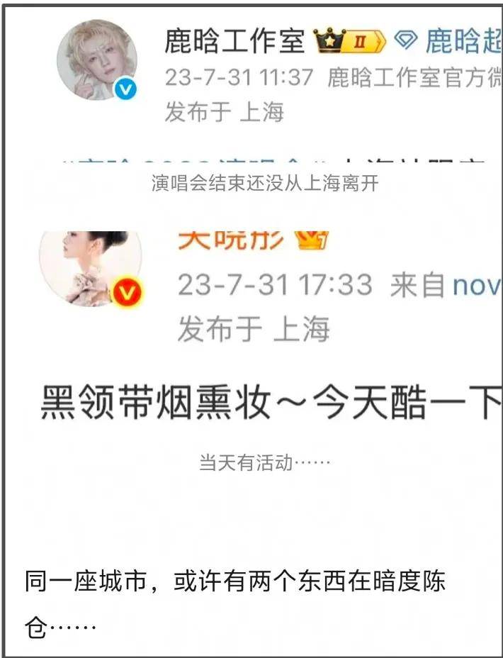 这时候网友回看关晓彤的行程,发现她同一时期竟然也在上海,这就意味着鹿晗演唱会期间,关晓彤和司晓迪同城了……