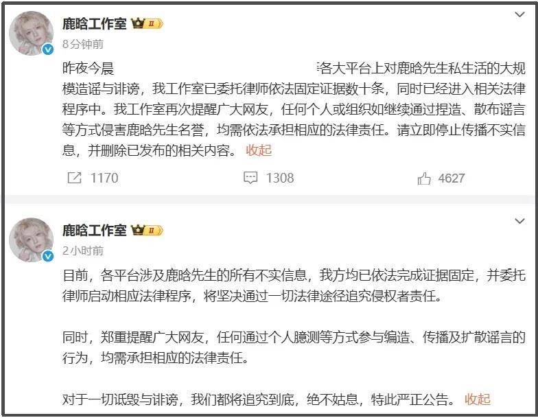 当然了,前排还是要强调一下,鹿晗工作室已经发声明了,表示会通过法律手段追究侵权者责任。