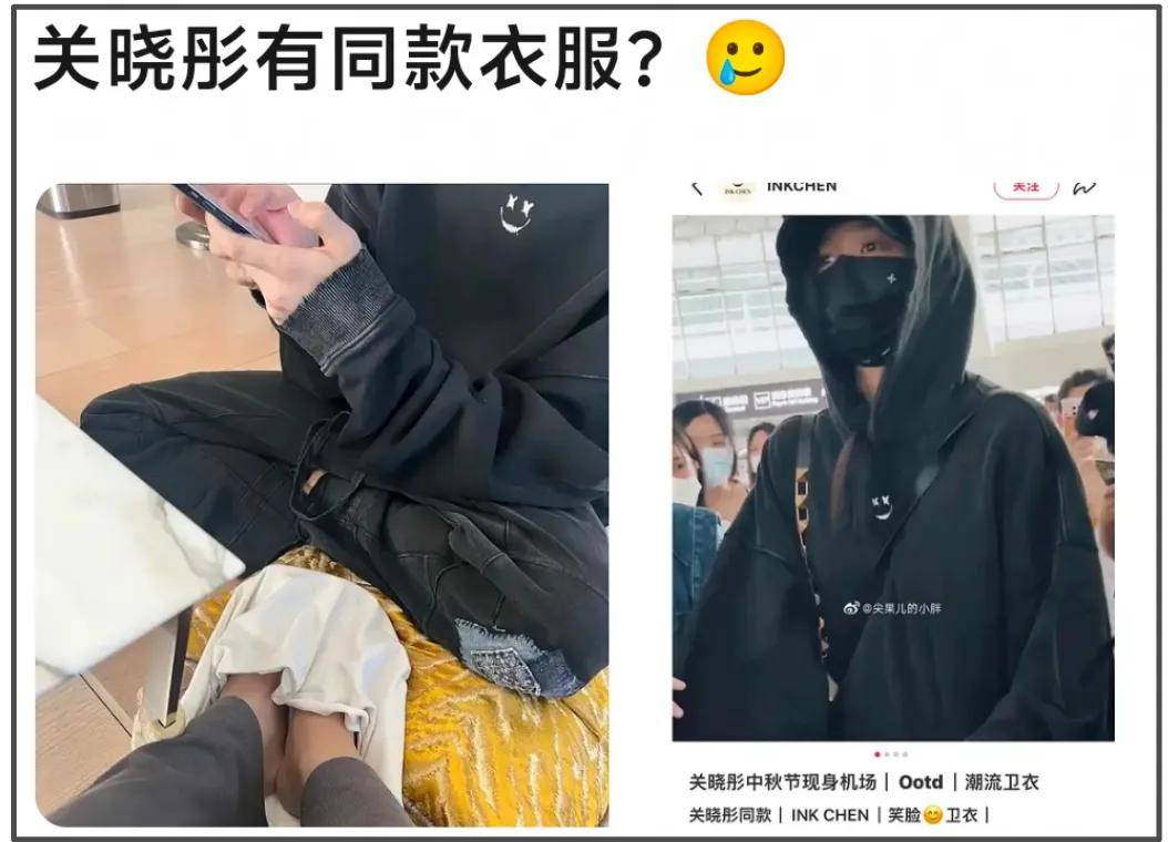 除此之外,网友还发现,在司晓迪晒出的疑似鹿晗照片中多次出现的卫衣,关晓彤也有一件,而且经常穿,不出意外正是情侣款,甚至有可能是同一件。