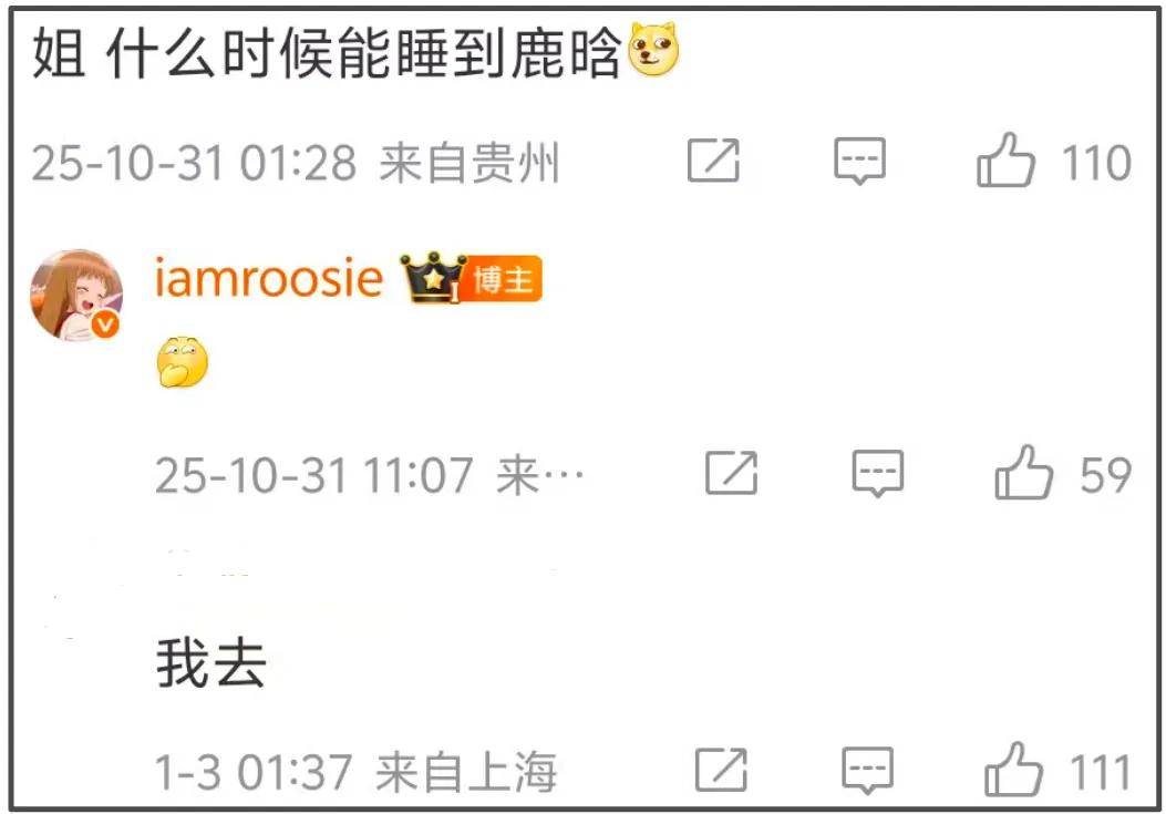 2025年10月,网友给司晓迪留言“什么时候能睡到鹿晗”,司晓迪回了一个偷笑表情。