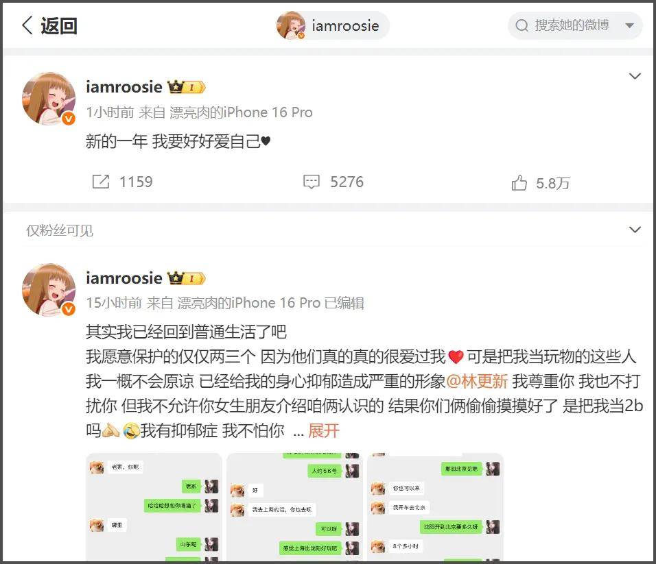 网红司晓迪开年瓜的后续来了!司晓迪上线删除了大部分爆料,只把林更新相关博文转为粉丝可见,还发文表示新的一年要好好生活,但转头就被网友扒出跑到外网持续爆料,还称要放大尺度照,更多细节也被曝光。