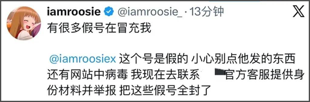 顺便还打假了冒充她的账号,希望大家不要被骗。