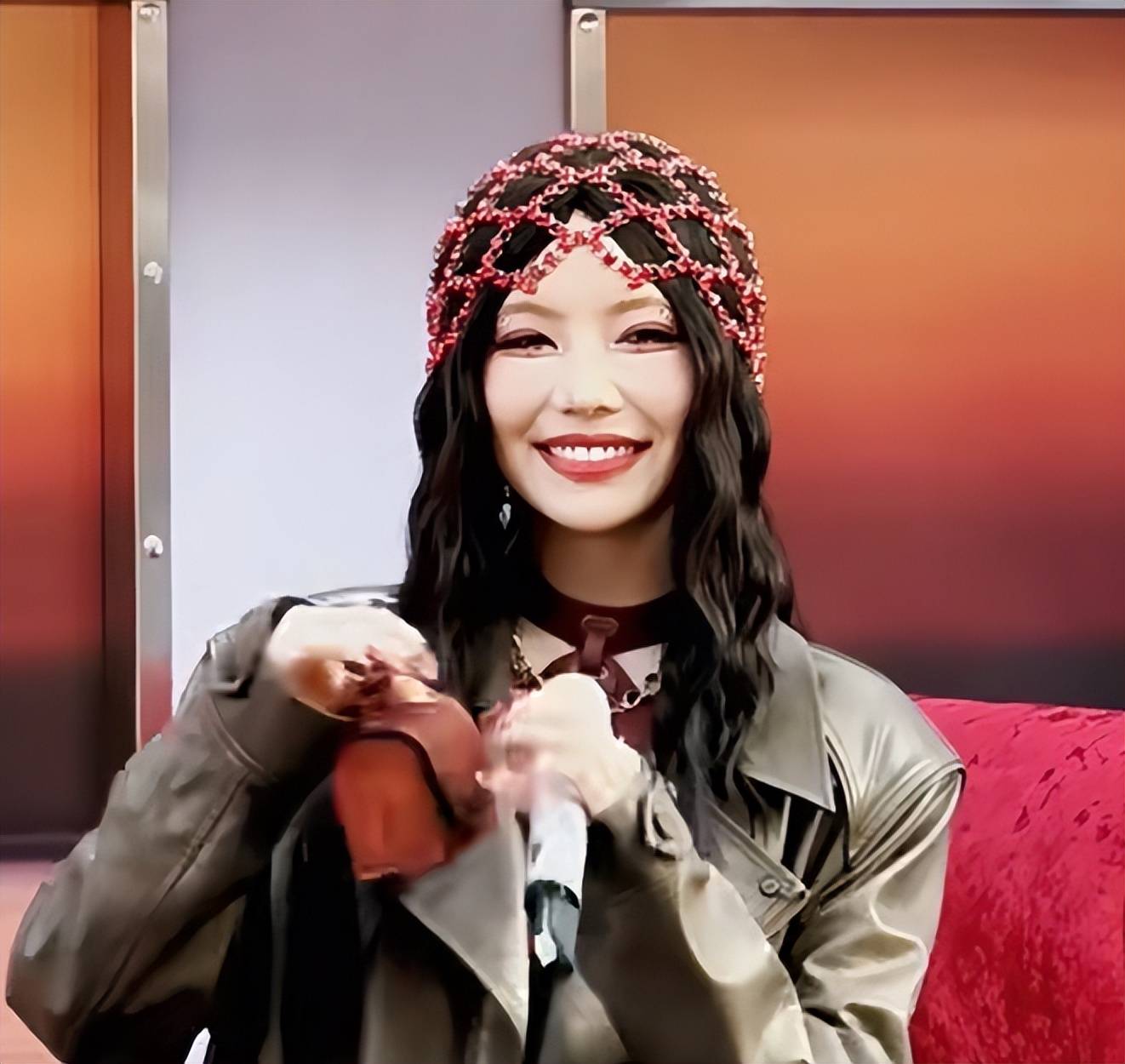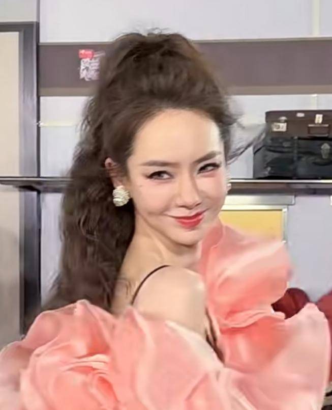头顶造型还暴露出她低颅顶的毛病,两腮的梨涡也怪怪的,虽然脸小,但是嘴巴显得格外的大。