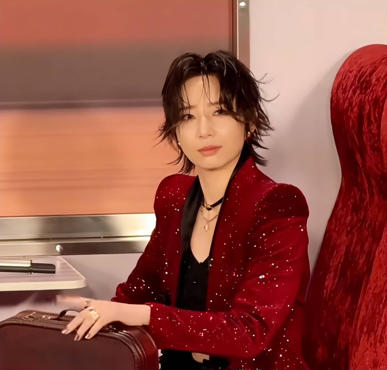 端正的红唇妆造很衬她,把她脸型流畅的优势都完全发挥了出来。