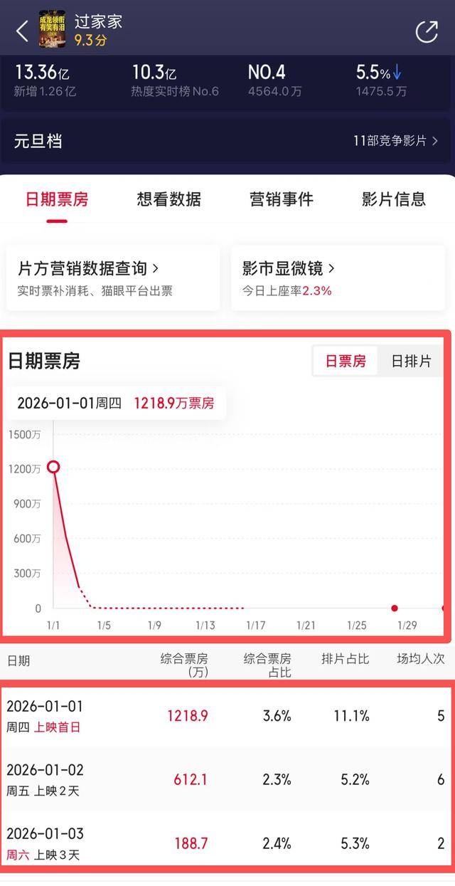 哪怕是元旦节当天,《过家家》的票房也只有1200万,与其他作品相差甚远。