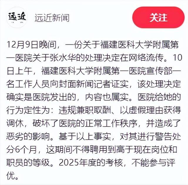 而且眼尖的网友还发现,张水华因为此事被医院进行警告处分六个月,并且在此期间,不得聘用到高于现在岗位和职员的等级。