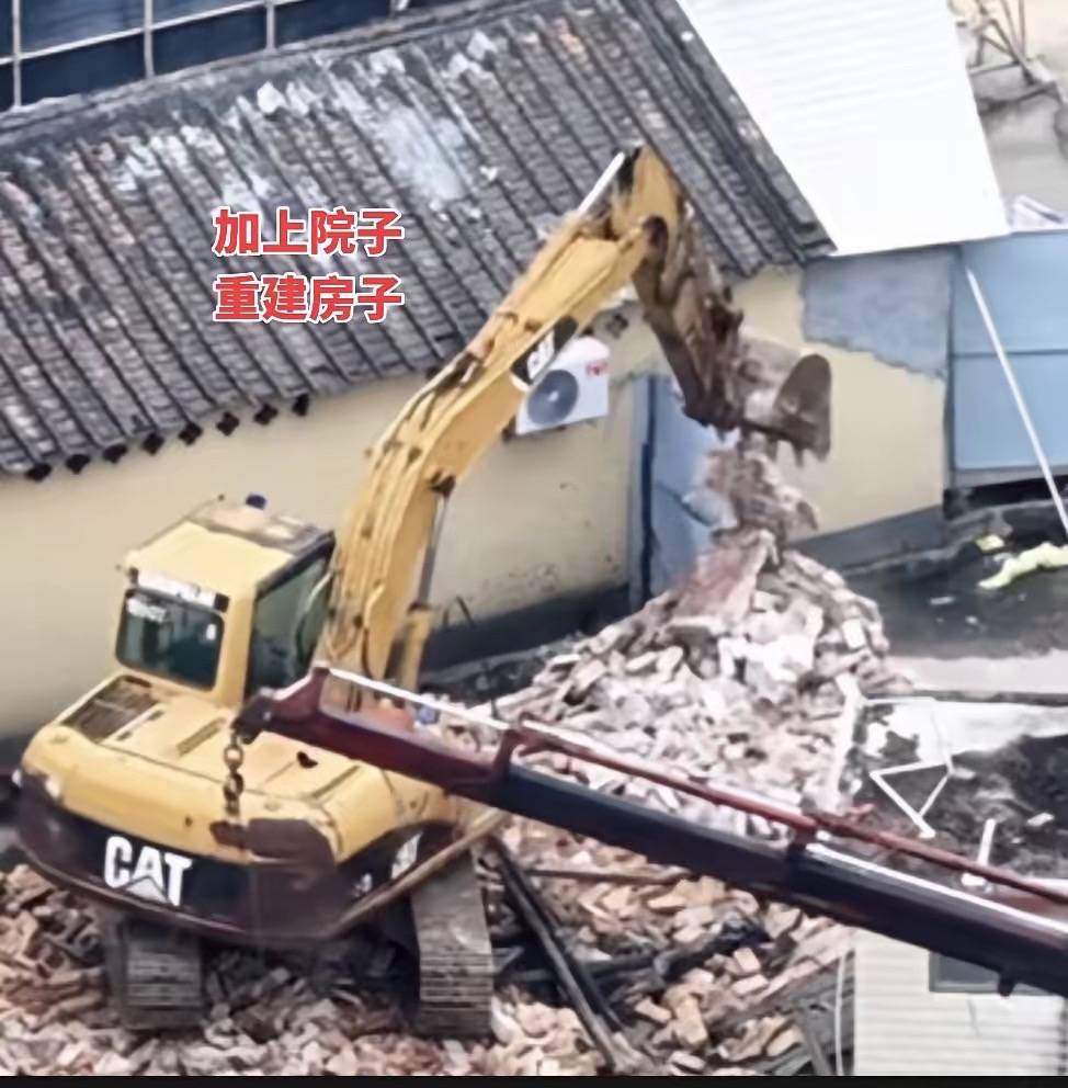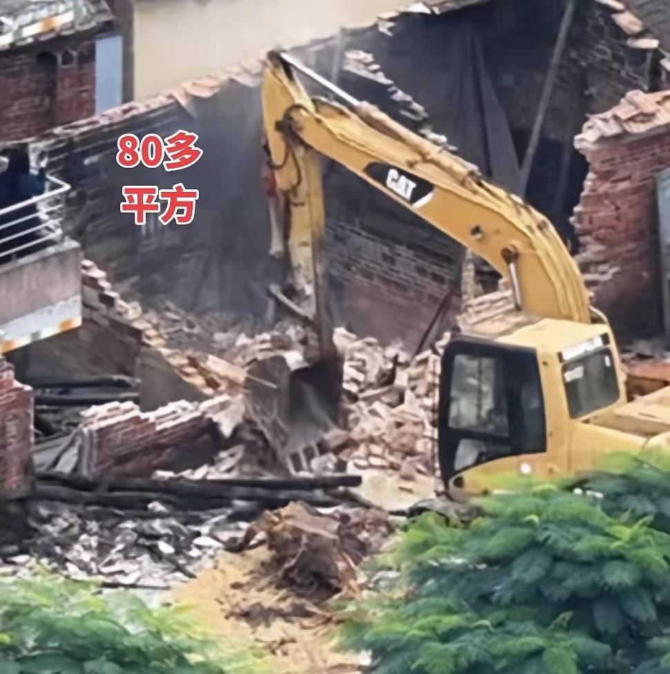 住宅的位置大概80平左右,挖掘机已经进场了,把原来的砖瓦房推倒,接着施工原料就可以进场了。