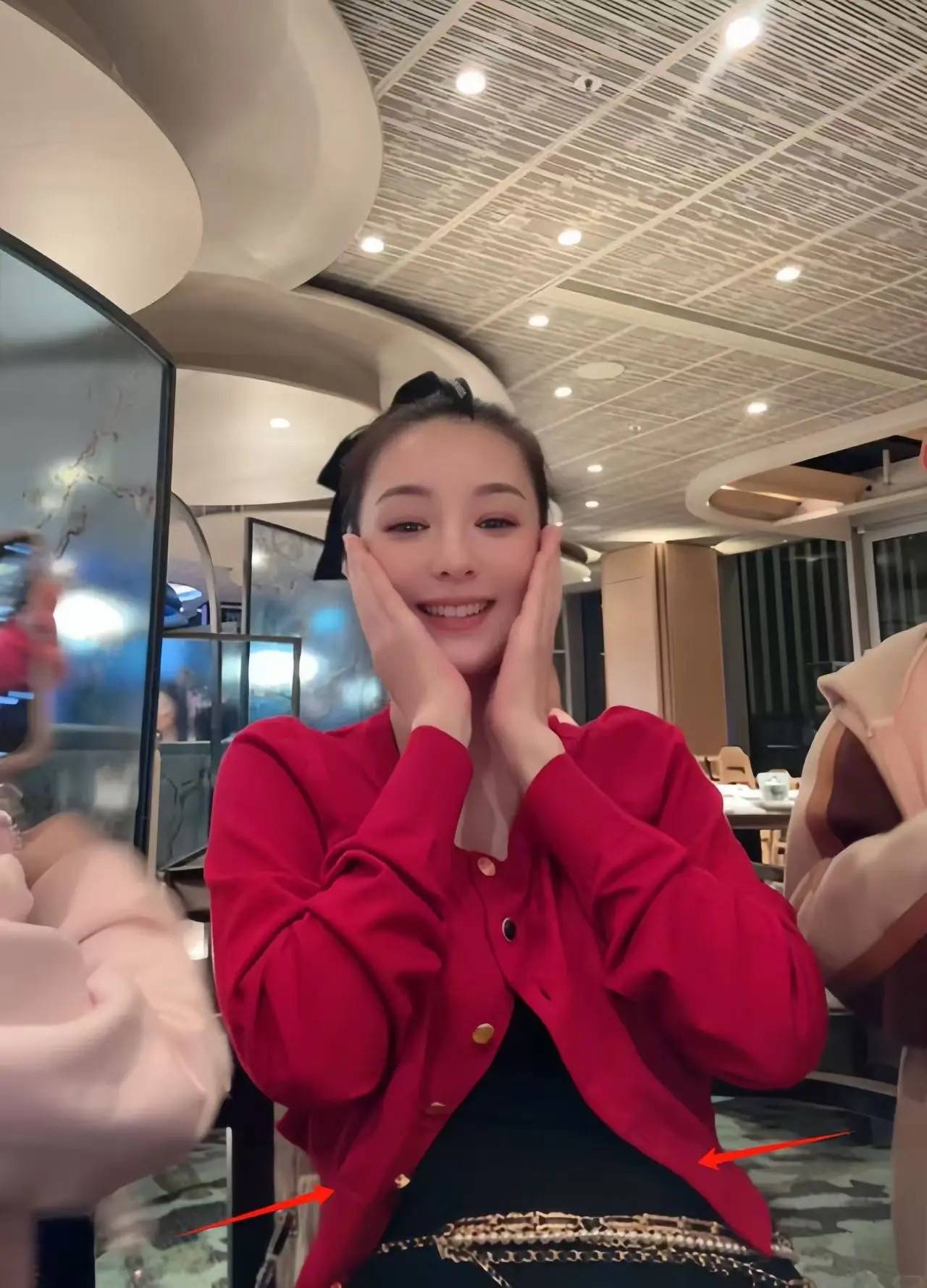 其实方媛的身材并没有完全恢复,她穿着宽松的中式套装,腹部还有明显隆起,产后身材没恢复也是真的。