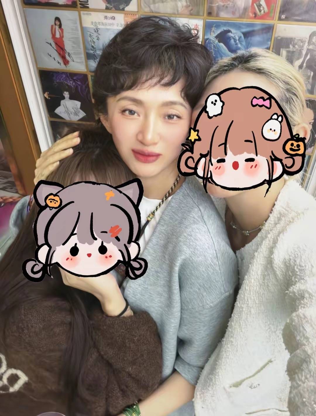 她穿着浅灰色的开衫外套,内搭是白色的T恤,在张澍怀里有一个可爱的小女孩,大概是朋友家的孩子吧。