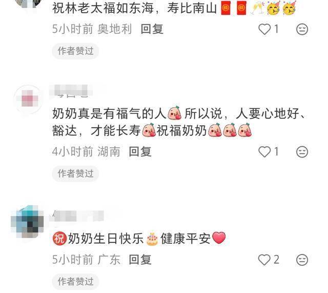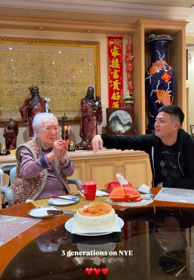林孝贤非常有默契地穿上了红色衣服,还搂着奶奶合照,祖孙俩笑容满面。相比于和林建岳庆生那次,这次的他显得格外开心和主动。