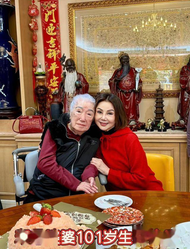 今天(1月4日),谢玲玲在社交账号上晒出为余宝珠庆生的视频。视频显示,余宝珠一头银发,柔顺又有光泽,身穿红色上衣,外搭黑色马甲,坐在轮椅上,估计腿脚可能有些不便了。看背景,余宝珠是在豪宅里庆生的。